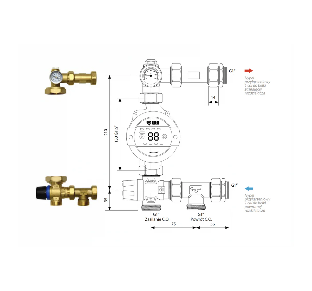 Grupa pompowa IBO GP MIX T 235 mm to gotowa grupa pompowa rozdzielacza przeznaczona do montażu z: